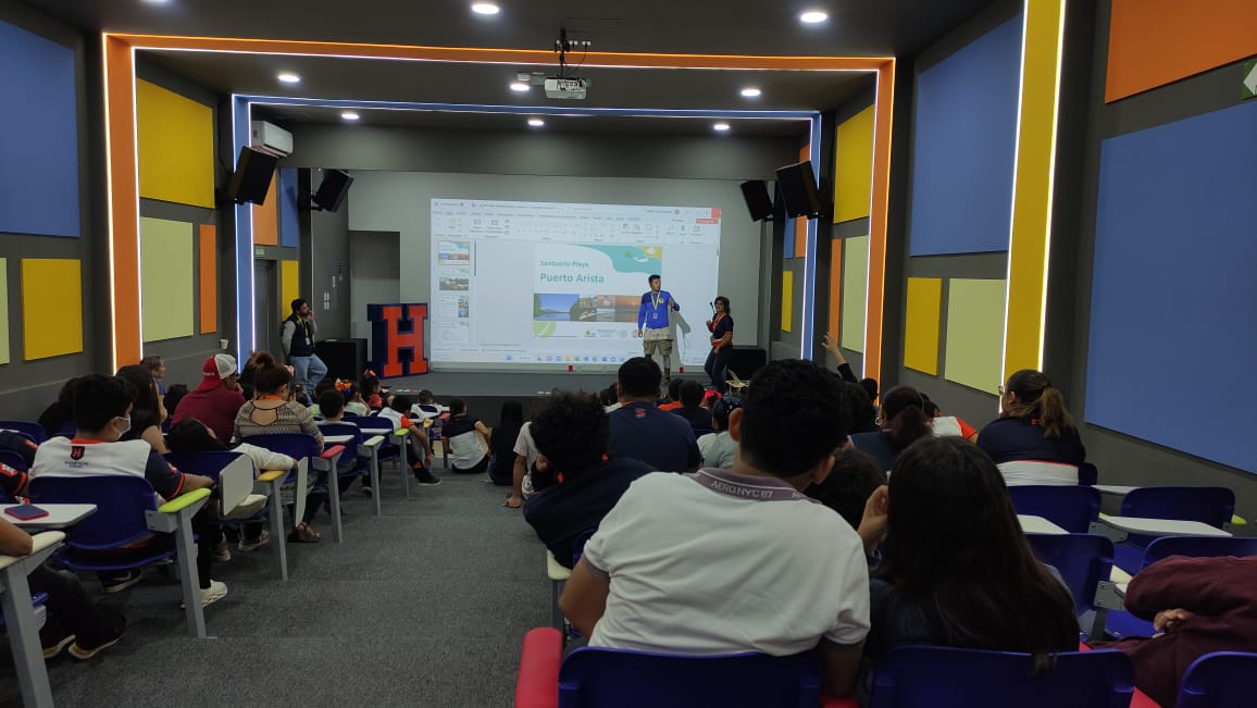 Dentro de las actividades programadas por las instituciones el pasado viernes 2 de diciembre de 2022, los estudiantes disfrutaron de una proyección de video animado sobre tortugas marinas en las instalaciones de la Hampton School “del que aprendieron cuan indispensable es la conservación y protección de las tortugas marinas y su contribución para con el medioambiente”, indicó el coordinador del Santuario Luis Arturo Álvarez.