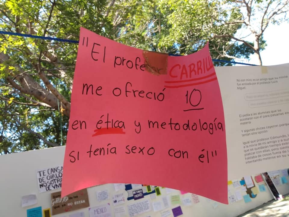 En las redes sociales se difundió la información de los tendederos y jóvenes egresadas de estas instituciones, sobre todo, del nivel medio superior se sumaron a denunciar a los mismos profesores que ya habían sido mencionados por otras alumnas.