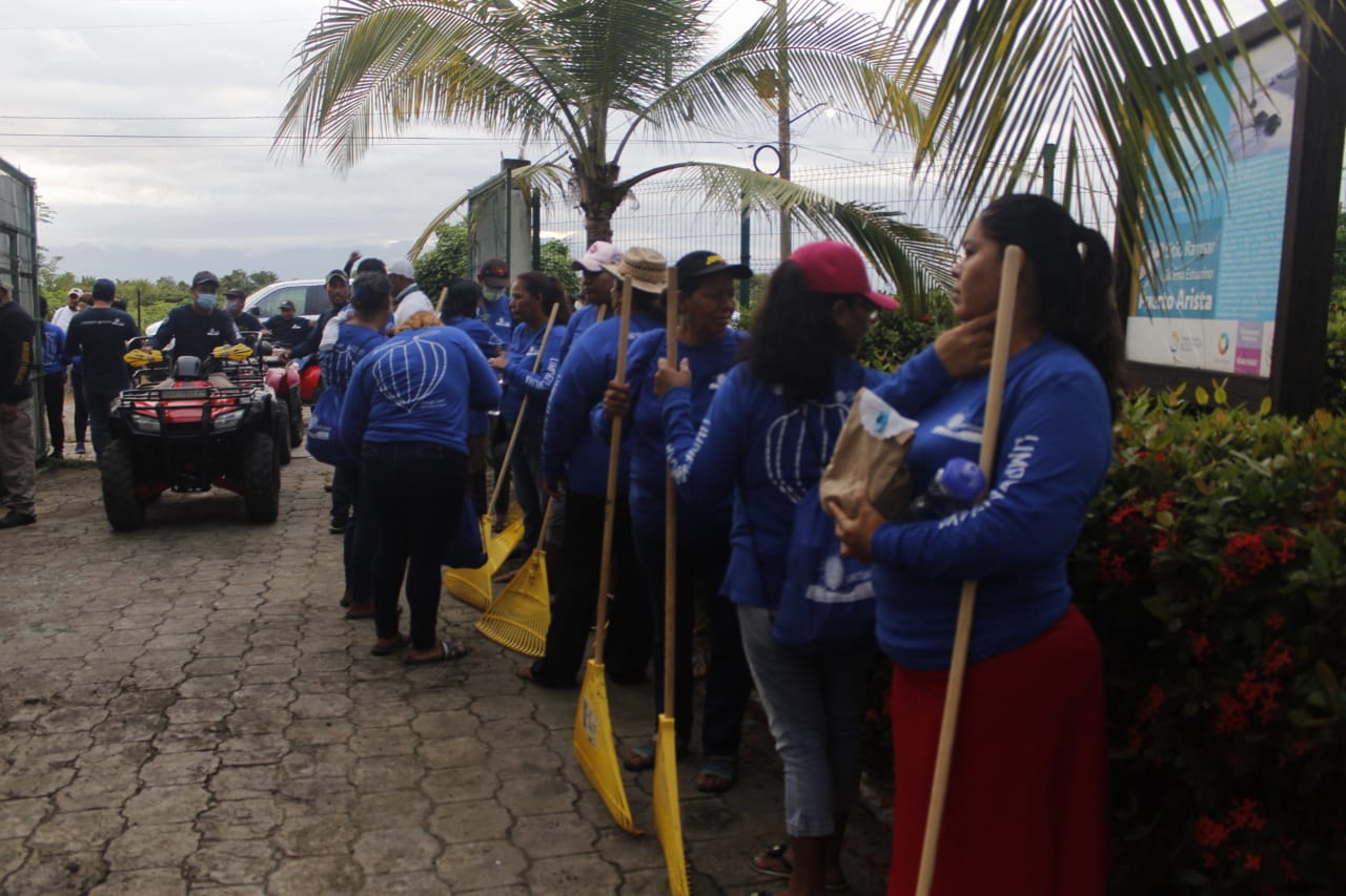 Una fuerza de trabajo constituida por decenas de mujeres y hombres realizó una recolección masiva de residuos sólidos en la playa del Santuario Puerto Arista, abarcando una extensión de 10 kilómetros, y teniendo como resultado la colecta de casi cuatro toneladas de desperdicios inorgánicos, como producto del arrastre de las corrientes del mar de fondo.